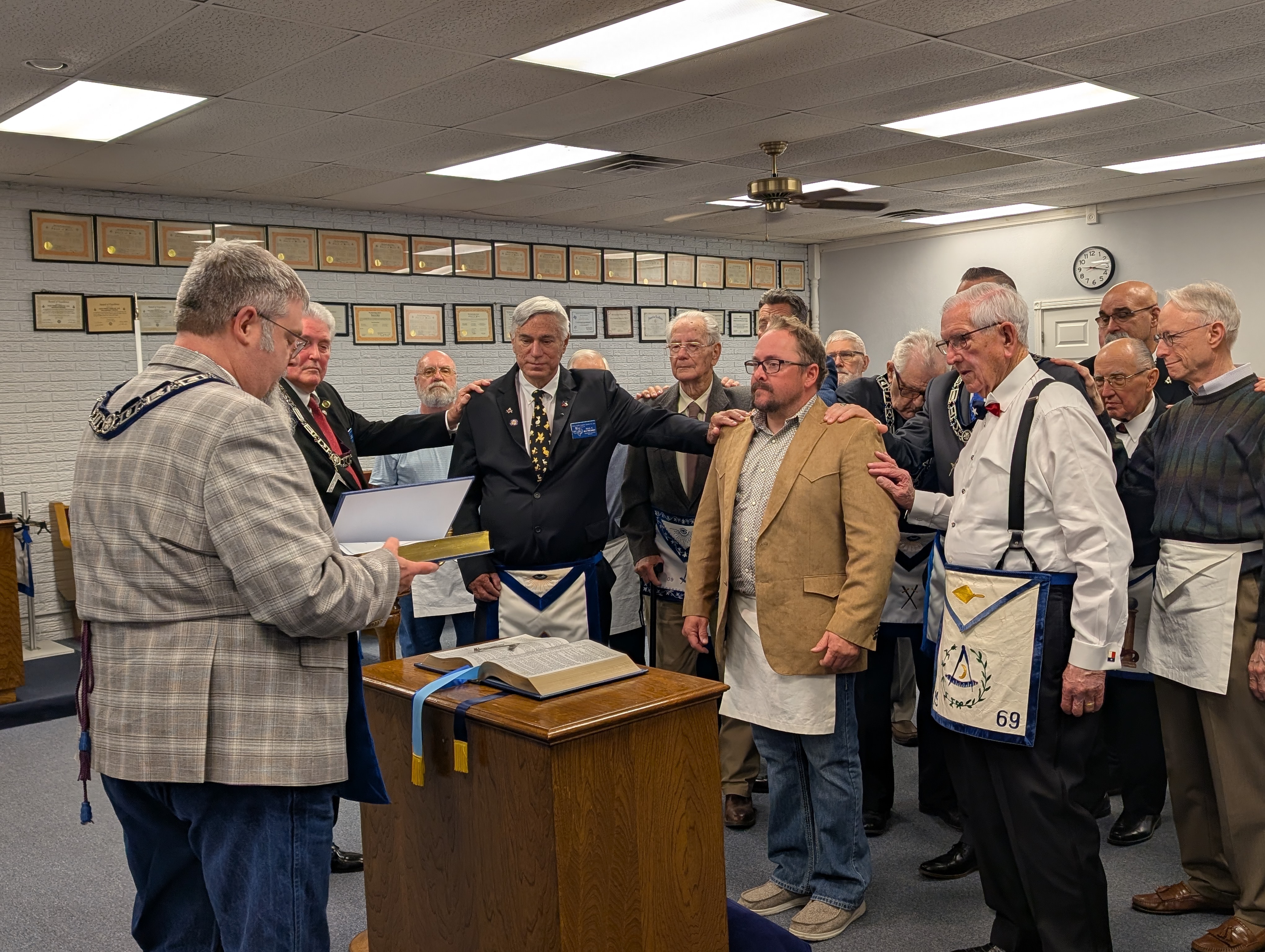 2025-2026 Officers Front-Left to Right: Treasurer Richard Logue; Senior Warden Kenneth Lawrence; Worshipful Master Paul Blumhardt; Junior Warden Jeff Jacobie; Secretary Nick Oliver |