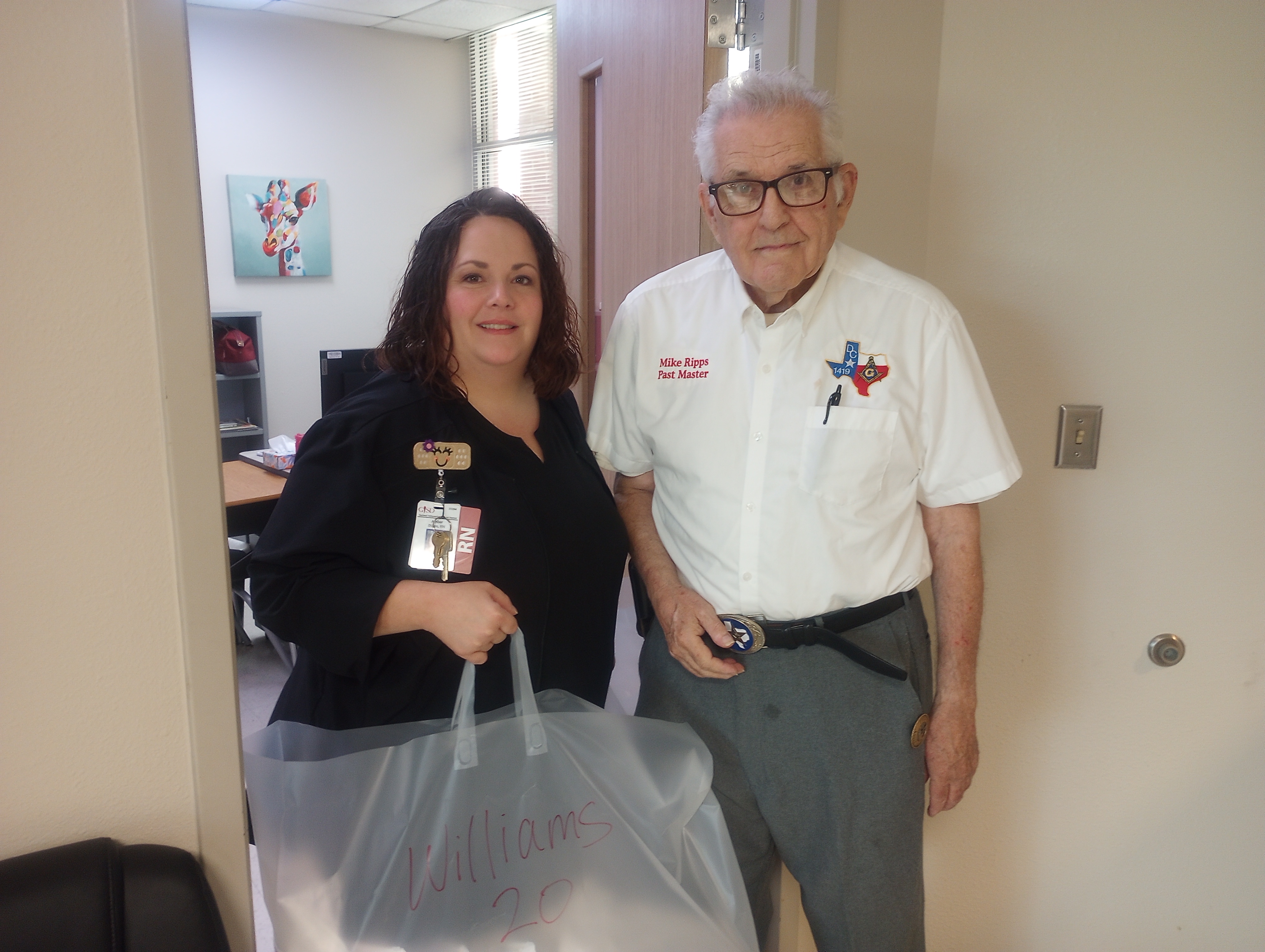 School Nurse Amber Dixon with Past Master Mike Ripps at Williams Elementary